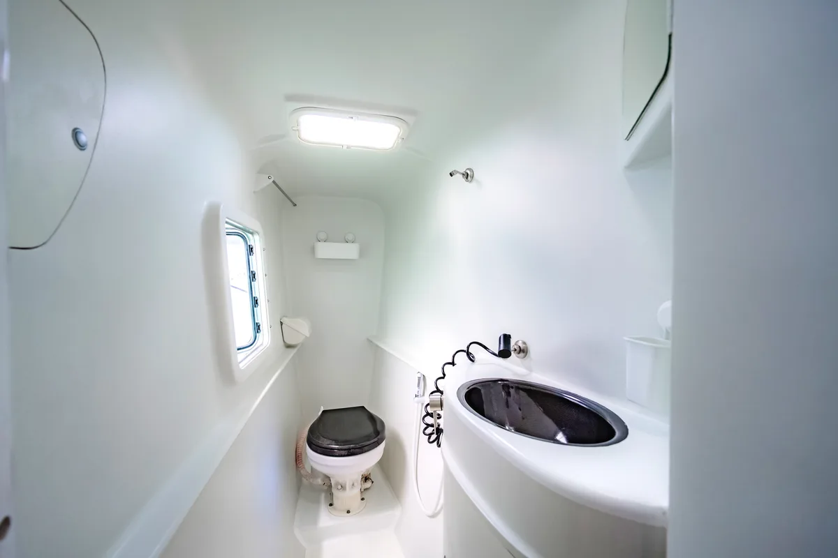 The simple, modern design sets an excellent contrast to the warm service from the crew, who do their job still with passion and love. The spacious open saloon with drop down windows offers perfect comfort in tropical waters.