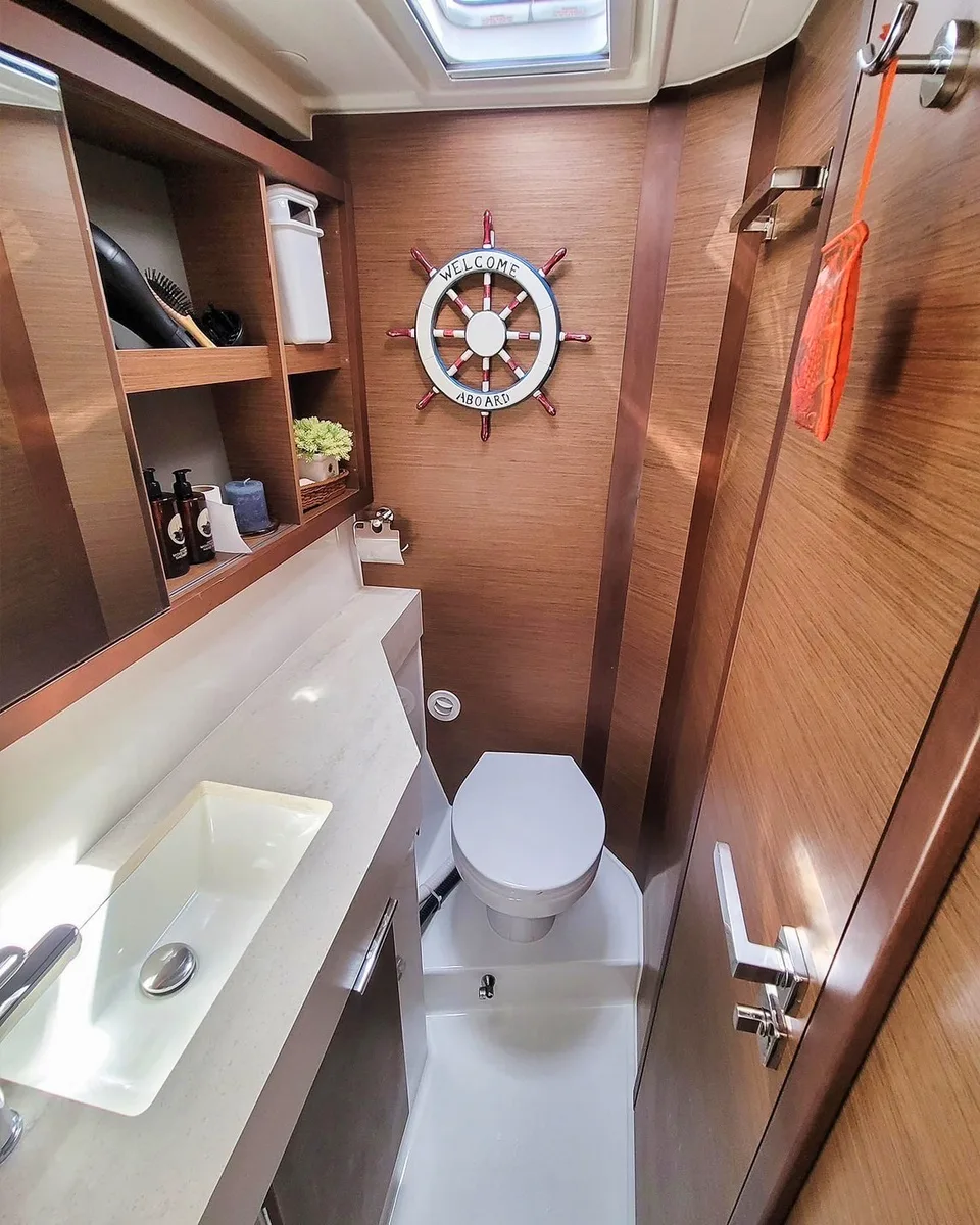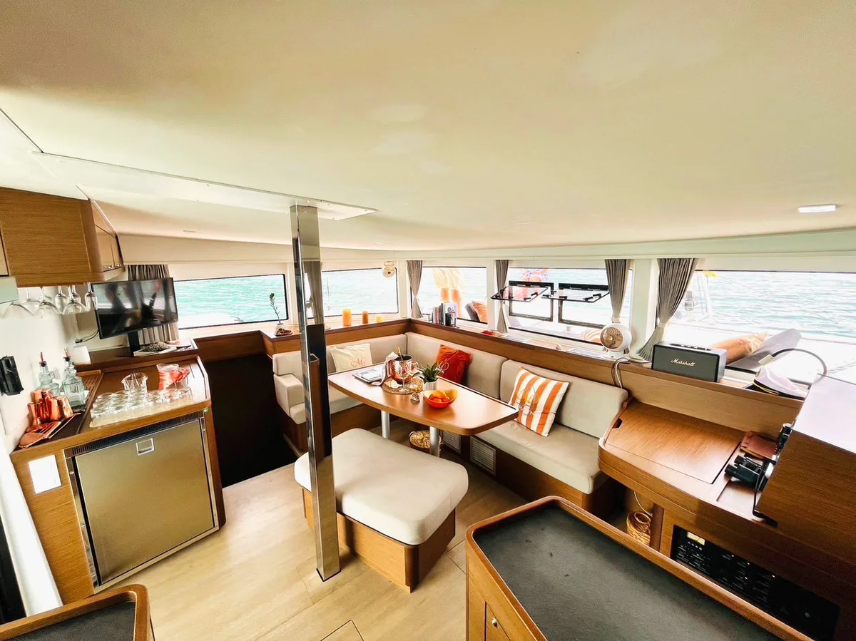 This sleek Lagoon catamaran for charter in Koh Samui is designed for comfort and performance, with space for up to 15 day guests. The sleeping accommodations for 8 in 4 air-conditioned cabins, each with its own ensuite bathroom, make her the best choice for for multi-day cruises around the islands of Samui. Enjoy a spacious cockpit, raised helm with great visibility, and a seamless indoor-outdoor layout. With a convertible saloon and additional bunk space, Maralyn is ideal for exploring Ang Thong Marine Park, Koh Phangan, or embarking on a longer island-hopping adventure. A stylish, stable choice for your private yacht charter in Thailand.