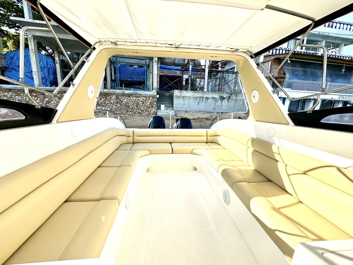 This Seat Boat 39ft cuts through Thai waters like a blade, reaching secluded beaches that larger vessels simply cannot access. What matters in Thai waters is speed and agility - Wasabi delivers both with twin 400hp engines that make the 45-minute journey feel effortless.