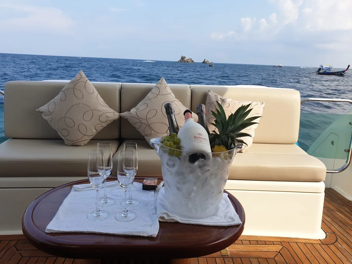 As you glide through the emerald waters of Krabi, it’s hard not to feel like you’ve stumbled into a scene from a fantasy novel where every island has its own story. Craggy cliffs rise dramatically, like nature's own roller coasters just waiting for adventure seekers. Your vessel for this unforgettable journey is the stunning Mona Lisa, an Azimut 54ft motor yacht that whispers luxury with every wave. With room for up to 10 guests, this yacht is your floating haven amidst Thailand’s tropical beauty.