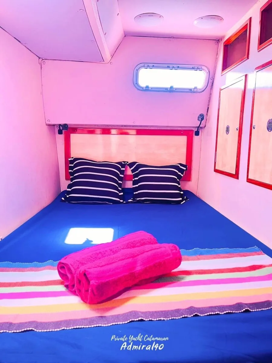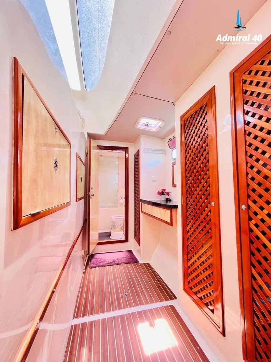 Why settle for crowded tourist boats when you can stretch out on the spacious nets of The Admiral while sailing to some of Phuket's most stunning spots? This Admiral SA 40ft catamaran absolutely transforms your day on Thailand's turquoise waters into something extraordinary.
