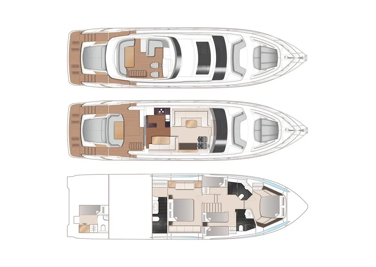 The sleek Princess 65ft delivers a thrilling sense of acceleration and control with eye-catching style, exceptional interior and exterior design that is sure to delight up to 16 day guests or 6 overnight passengers.